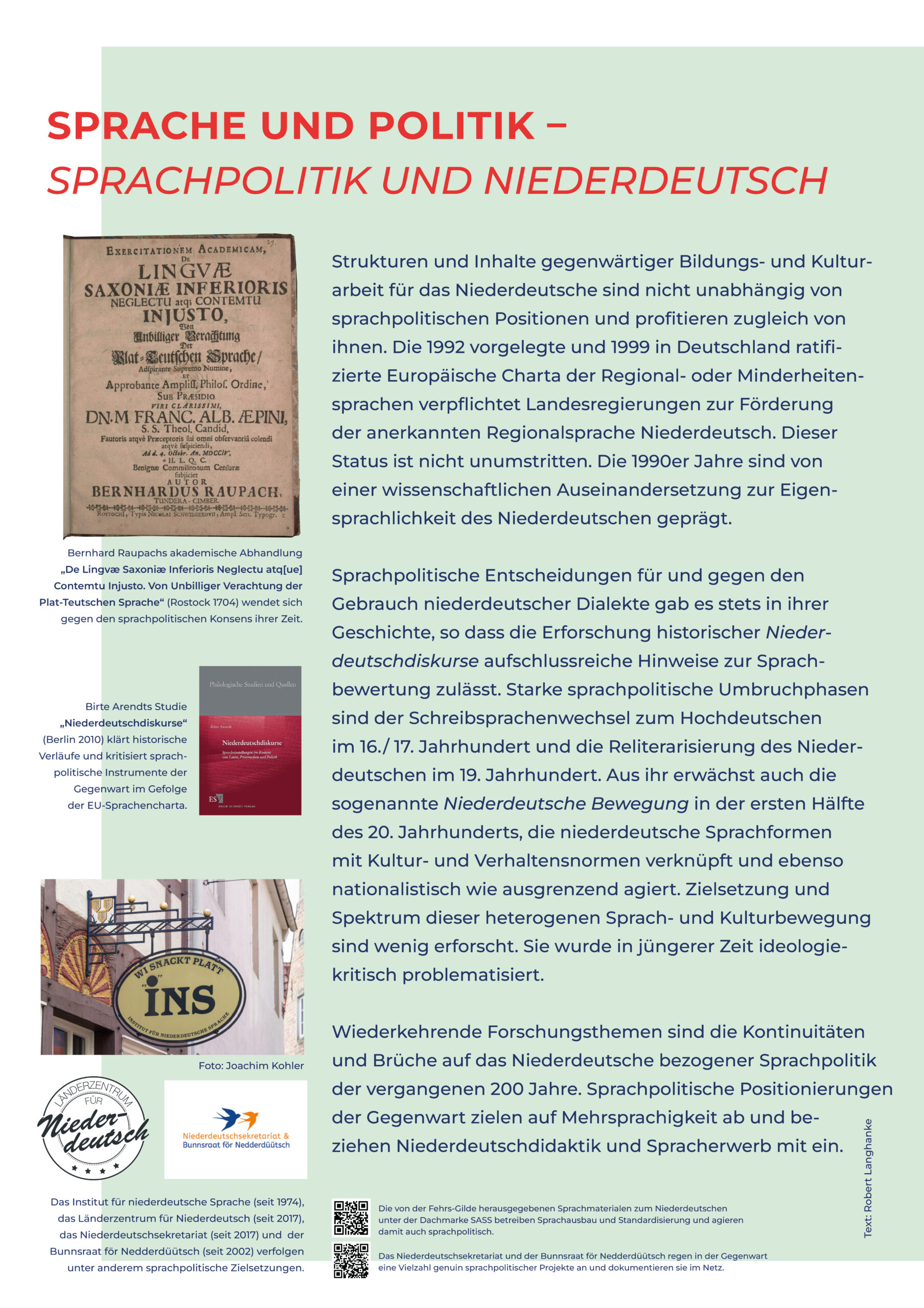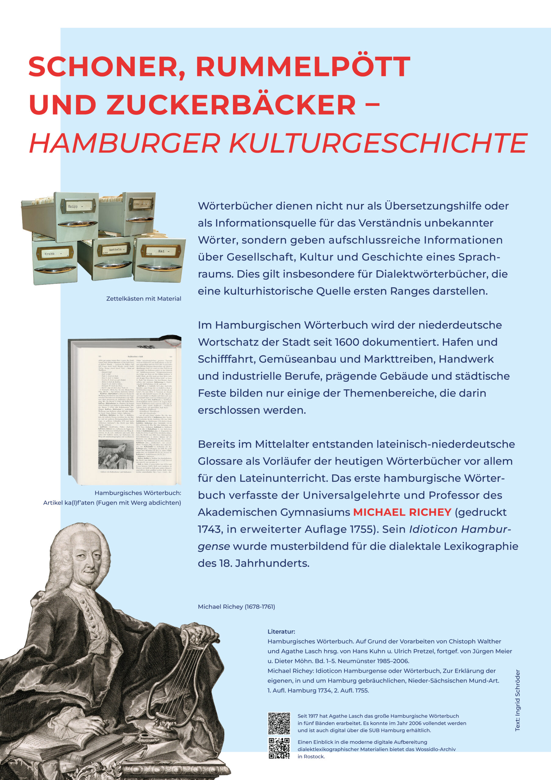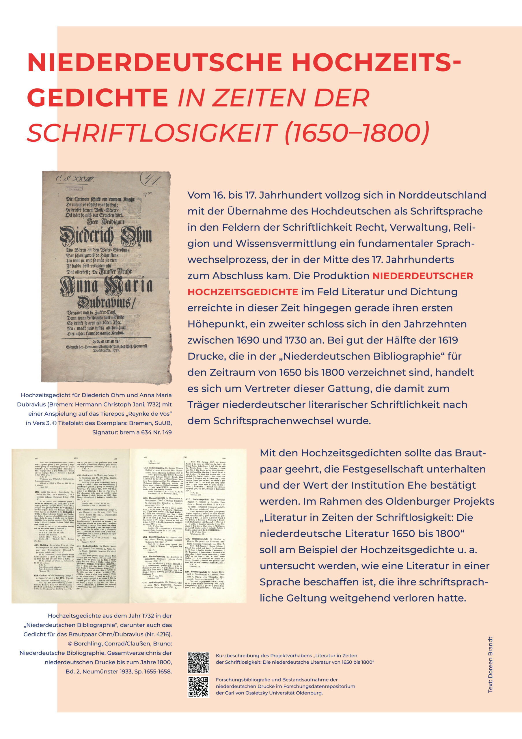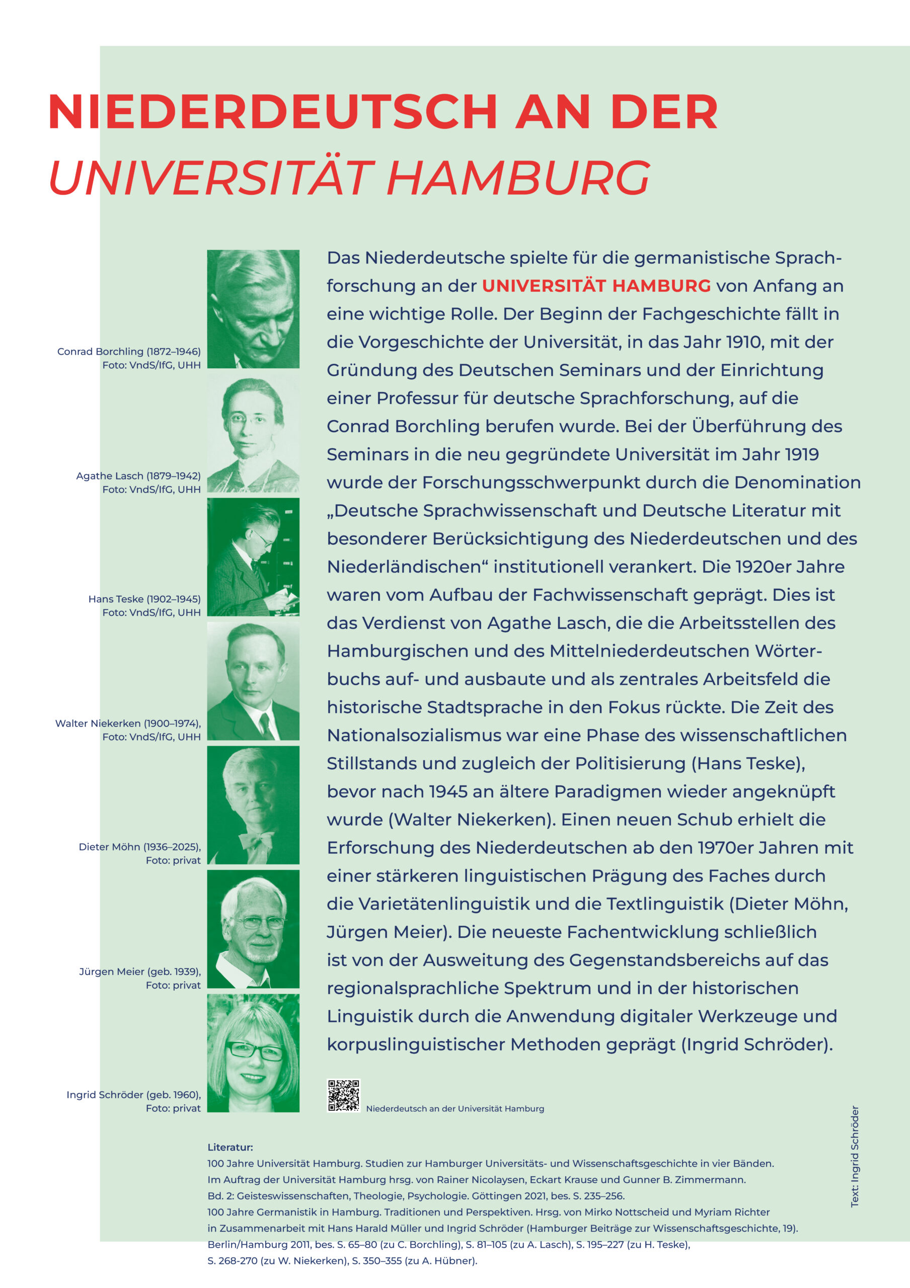 Auf dieser Seite finden Sie Ressourcen, die aus Anlass des 150-jährigen Vereinsjubiläums von Vereins- und insbesondere Vorstandsmitgliedern gemeinsam entwickelt wurden und in der Universitätsbibliothek der Universität Hamburg 2025 erstmals zu sehen waren. Die Materalien fassen relevante Befunde und zentrale Forschungsthemen der niederdeutschen Philologie zusammen.